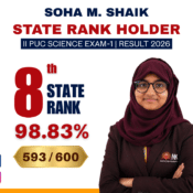 She scored 591 out of 600 marks, earning distinction and placing herself among the top rank holders in Karnataka. Her subject-wise scores include 97 in English, 100 in Hindi, 99 in Physics, 99 in Chemistry, 100 in Mathematics, and 96 in Biology.
